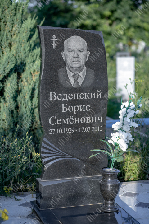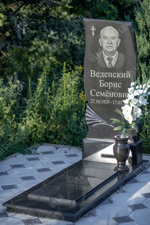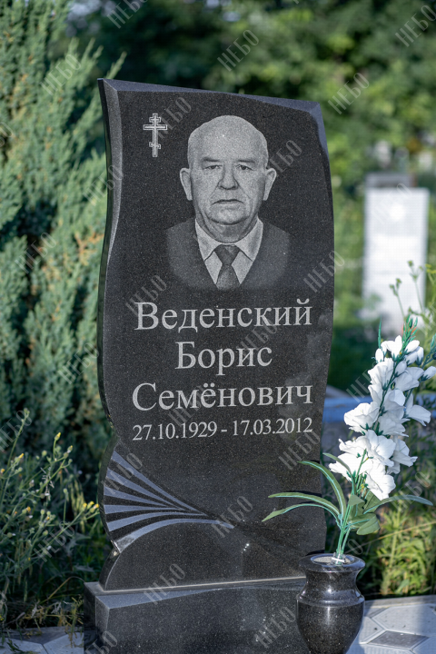 Памятник для православного человека с фигурной стелой, вазой и закрытым надгробием выполнен в лаконичном черном цвете. Вертикальная гранитная плита изготовлена с использованием ассиметричных линий в дизайне памятника, что придает ритуальному изделию индивидуальность. Закрытое надгробие имеет правильную прямоугольную форму, ровную сплошную поверхность без дополнительных элементов, что значительно упрощает уход за ритуальным изделием. Размеры памятника и соотношение объемов стелы к надгробию проработаны специалистами с учетом имеющейся нагрузки и визуального восприятия. Такой подход гарантирует долговечность и исключает искажения памятника.