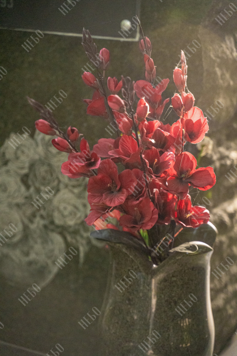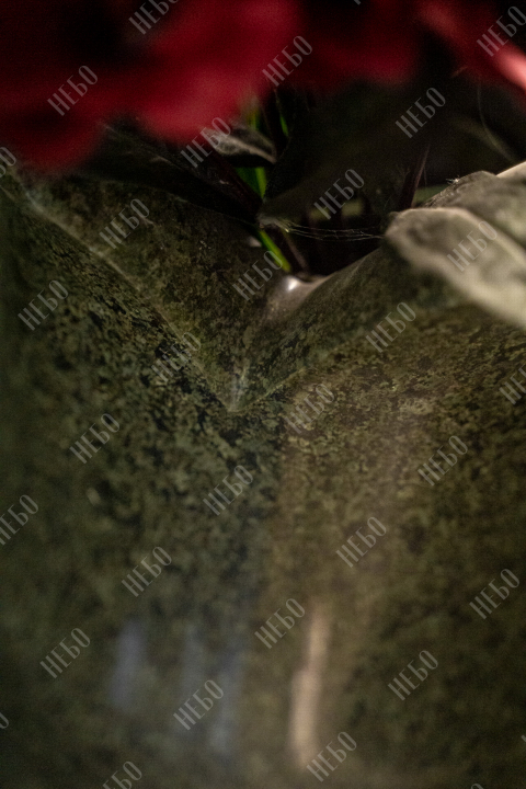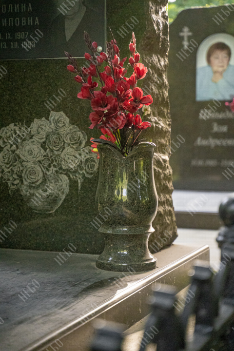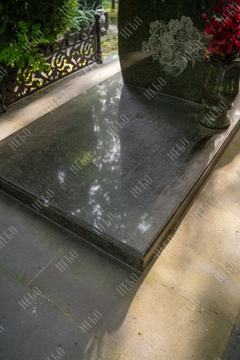 Вертикальный памятник для православного человека с хаотично оформленным краем стелы, закрытым надгробием и вазой у основания. Такой вариант обработки контура памятника выглядит оригинально, создавая впечатление, что сама природа приняла участие в его создании. Закрытое надгробие исключает появление сорняков на поверхности гробницы и упрощает уход за ритуальным изделием. При изготовлении памятника специалисты тщательно прорабатывают соотношение форм, размеров и нагрузку, чтобы исключить деформации и искажения изделия со временем.