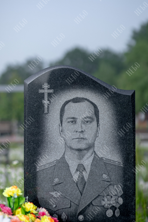 Христианский памятник волна с вертикальной стелой. Изделие имеет закрытое надгробие и фигурно обработанные края по контуру стелы. Такое решение придает объем внешнему виду ритуального изделия и делает его очертания более мягким. Закрытое надгробие упрощает уход за ритуальным изделием, позволяя нанести на него гравировку. Памятник изготовлен с учетом всех нюансов почвы на выбранном кладбище, размеры и форма изделия тщательно проработаны специалистами, дабы исключить возможные искажения в будущем.